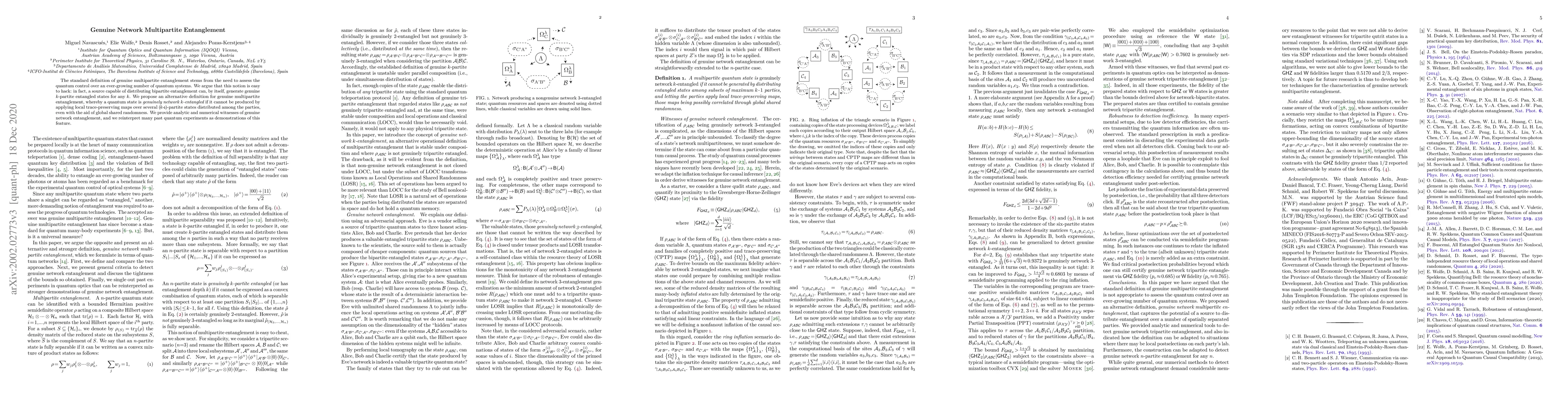 This paper proposes a new definition for genuine multipartite entanglement, arguing that existing definitions can be easily manipulated. It introduces a stricter criterion where genuine network entanglement requires states that cannot be produced by local operations and shared randomness, and provides witnesses to verify this entanglement.