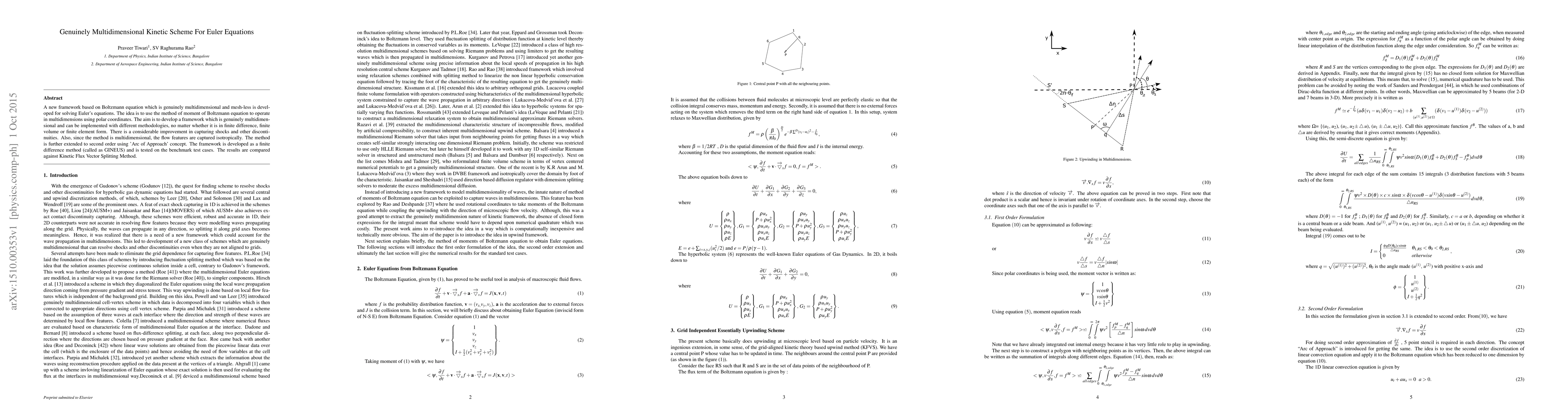 A new framework based on Boltzmann equation which is genuinely multidimensional and mesh-less is developed for solving Euler's equations. The idea is to use the method of moment of Boltzmann equation to operate in multidimensions using polar coordinates. The aim is to develop a framework which is genuinely multidimensional and can be implemented with different methodologies, no matter whether it is in finite difference, finite volume or finite element form. There is a considerable improvement in capturing shocks and other discontinuities. Also, since the method is multidimensional, the flow features are captured isotropically. The method is further extended to second order using 'Arc of Approach' concept. The framework is developed as a finite difference method (called as GINEUS) and is tested on the benchmark test cases. The results are compared against Kinetic Flux Vector Splitting Method.
