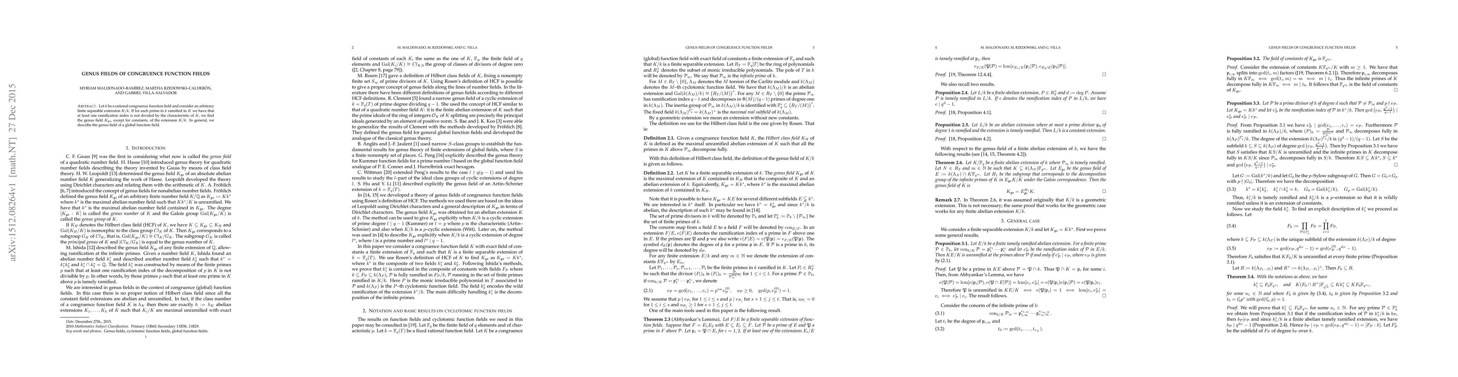 Let $k$ be a rational congruence function field and consider an arbitrary finite separable extension $K/k$. If for each prime in $k$ ramified in $K$ we have that at least one ramification index is not divided by the characteristic of $K$, we find the genus field $\g K$, except for constants, of the extension $K/k$. In general, we describe the genus field of a global function field.