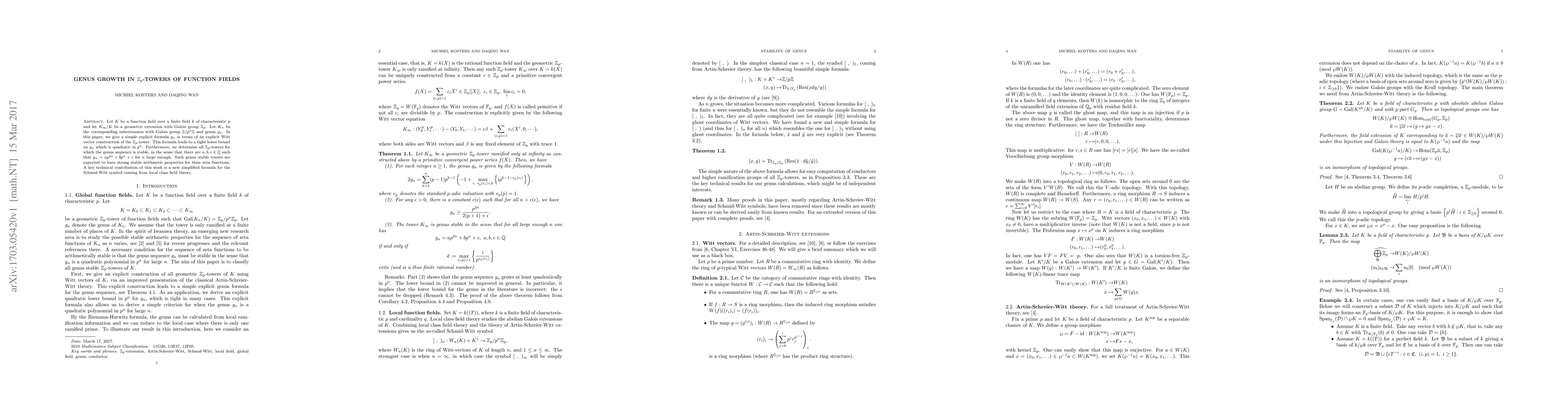 This paper provides an explicit formula for the genus $g_n$ in $\mathbb{Z}_p$-towers of function fields over finite fields, showing it is quadratic in $p^n$ and determining when the genus sequence stabilizes. A new simplified formula for the Schmid-Witt symbol is also introduced.