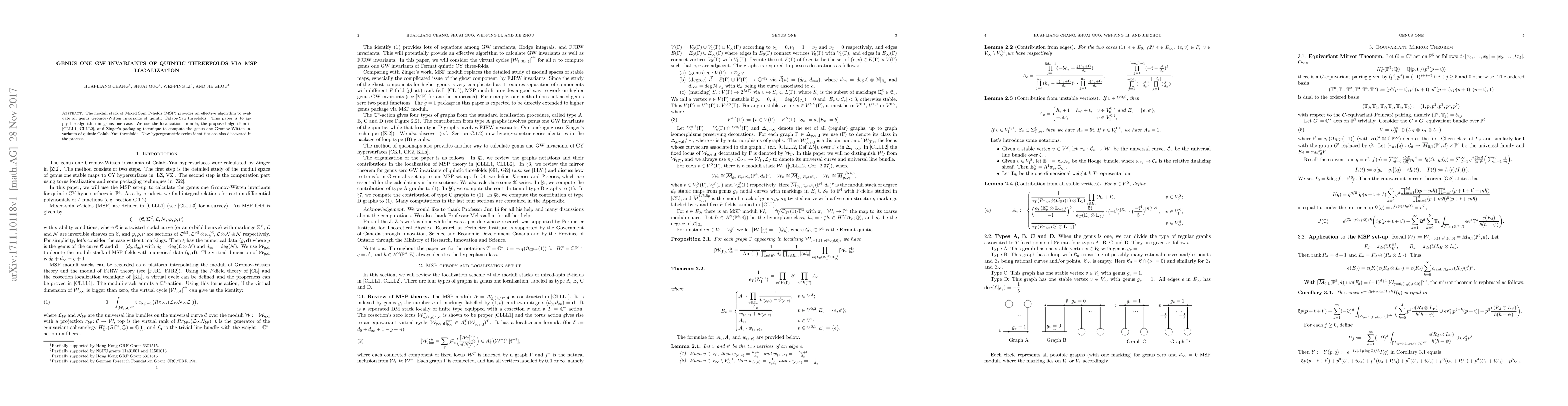 This paper applies the Mixed Spin P-fields (MSP) localization algorithm to calculate genus one Gromov-Witten invariants of quintic Calabi-Yau threefolds, discovering new hypergeometric series identities along the way.