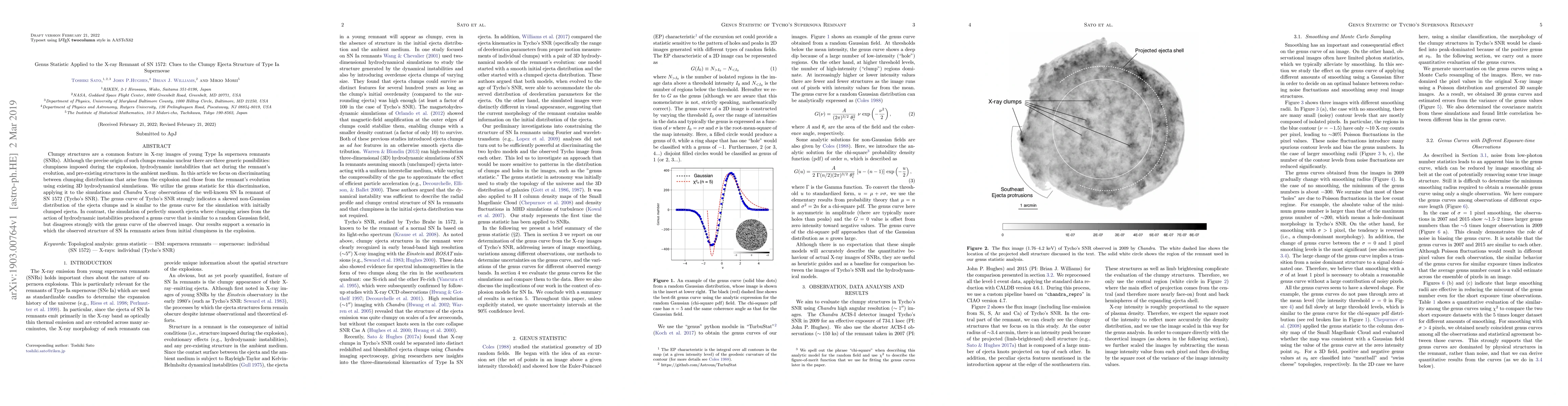 Clumpy structures are a common feature in X-ray images of young Type Ia supernova remnants (SNRs). Although the precise origin of such clumps remains unclear there are three generic possibilities: clumpiness imposed during the explosion, hydrodynamic instabilities that act during the remnant's evolution, and pre-existing structures in the ambient medium. In this article we focus on discriminating between clumping distributions that arise from the explosion and those from the remnant's evolution using existing 3D hydrodynamical simulations. We utilize the genus statistic for this discrimination, applying it to the simulations and {\it Chandra} X-ray observations of the well-known SN Ia remnant of SN 1572 (Tycho's SNR). The genus curve of Tycho's SNR strongly indicates a skewed non-Gaussian distribution of the ejecta clumps and is similar to the genus curve for the simulation with initially clumped ejecta. In contrast, the simulation of perfectly smooth ejecta where clumping arises from the action of hydrodynamic instabilities produced a genus curve that is similar to a random Gaussian field, but disagrees strongly with the genus curve of the observed image. Our results support a scenario in which the observed structure of SN Ia remnants arises from initial clumpiness in the explosion.