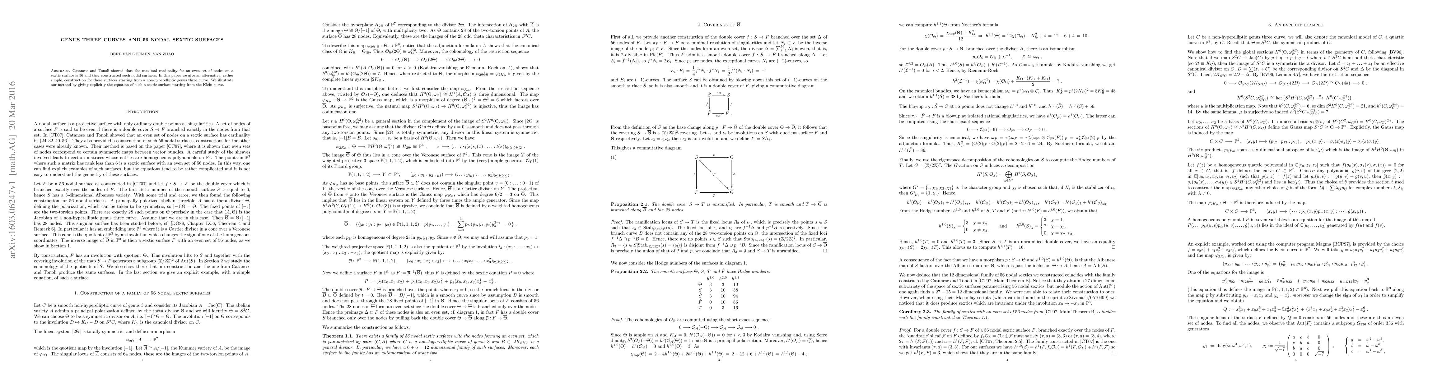 This paper presents an alternative construction of nodal sextic surfaces with a maximal 56 nodes, originally constructed by Catanese and Tonoli, using a non-hyperelliptic genus three curve. The method is demonstrated through the explicit equation of a sextic surface derived from the Klein curve.
