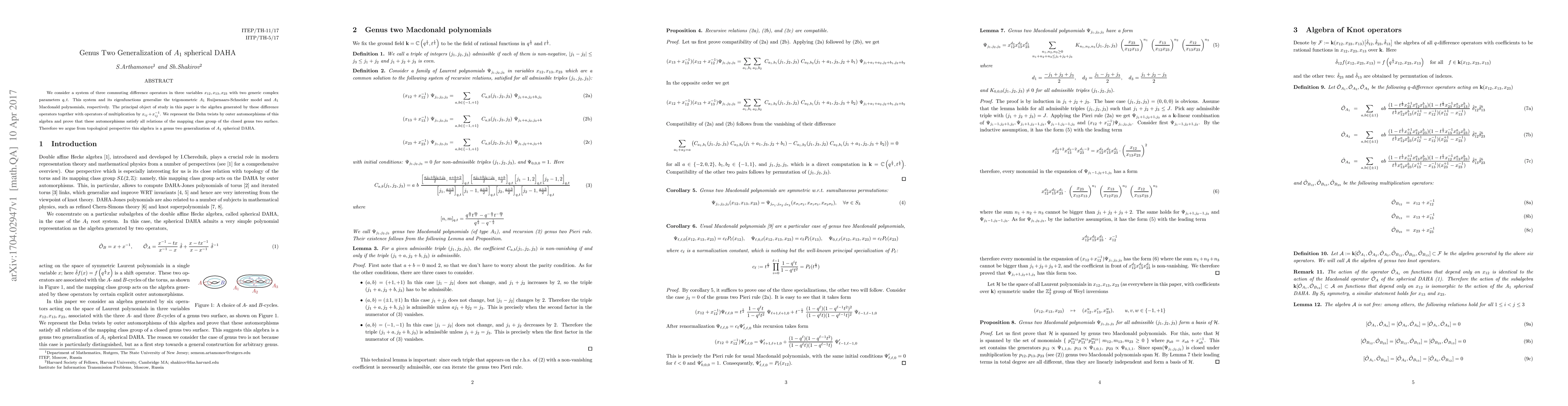 Researchers have generalized a specific algebraic system to represent genus two surfaces, bridging it to known mathematical concepts like Ruijsenaars-Schneider model and Macdonald polynomials.