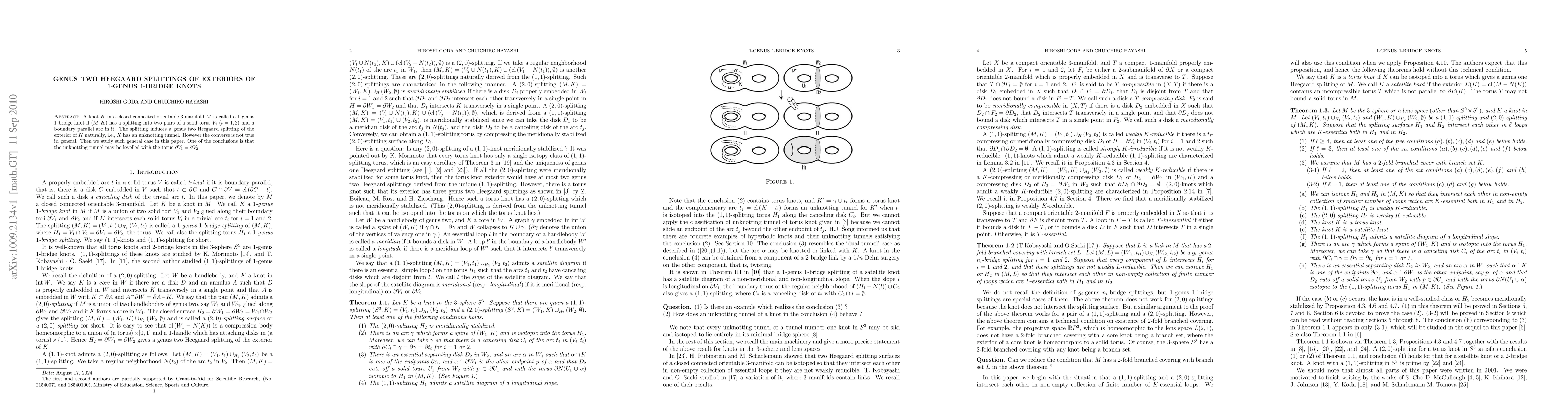 A knot K in a closed connected orientable 3-manifold M is called a 1-genus 1-bridge knot if (M,K) has a splitting into two pairs of a solid torus V_i (i=1,2) and a boundary parallel arc in it. The splitting induces a genus two Heegaard splitting of the exterior of K naturally, i.e., K has an unknotting tunnel. However the converse is not true in general. Then we study such general case in this paper. One of the conclusions is that the unknotting tunnel may be levelled with the torus \partial V_1=\partial V_2.