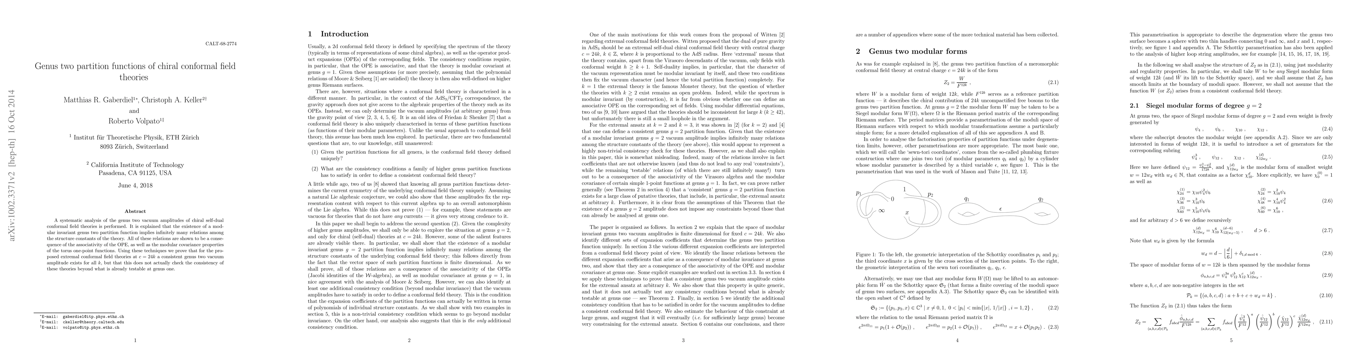 This paper analyzes genus two vacuum amplitudes in chiral self-dual conformal field theories, revealing that a modular invariant partition function leads to infinite relations among structure constants. These relations stem from the associativity of operator product expansion and modular covariance, confirming consistent genus two amplitudes for extremal theories at c=24k, though this does not extend beyond genus one consistency checks.