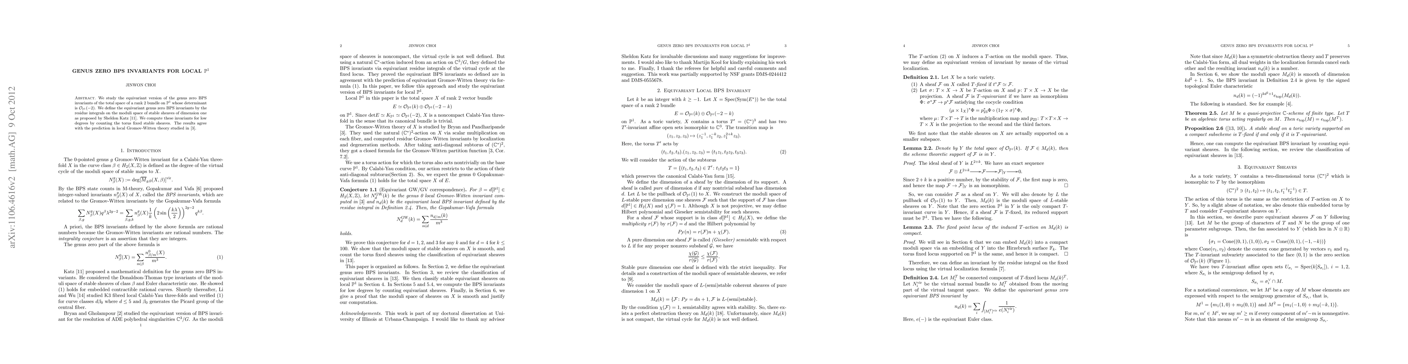 The paper defines equivariant genus zero BPS invariants for a rank 2 bundle on P^1 with O(-2) determinant via residue integrals on stable sheaf moduli space, computes these invariants by counting fixed stable sheaves, and finds results consistent with local Gromov-Witten theory predictions.