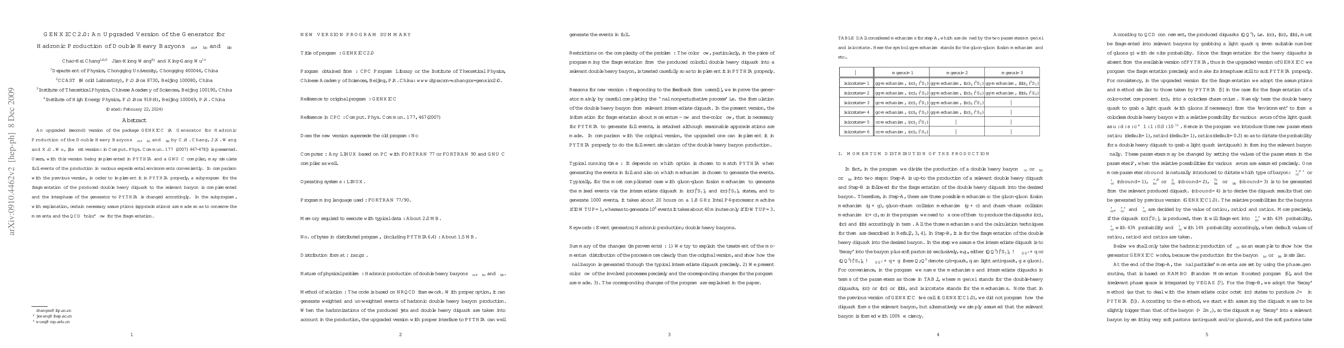 An upgraded (second) version of the package GENXICC ({\bf A Generator for Hadronic Production of the Double Heavy Baryons $\Xi_{cc}$, $\Xi_{bc}$ and $\Xi_{bb}$ by C.H. Chang, J.X. Wang and X.G. Wu,} [its first version: in Comput. Phys. Commun. {\bf 177} (2007) 467-478]) is presented. Users, with this version being implemented in PYTHIA and a GNU C compiler, may simulate full events of the production in various experimental environments conveniently. In comparison with the previous version, in order to implement it in PYTHIA properly, a subprogram for the fragmentation of the produced double heavy diquark to the relevant baryon is complemented and the interphase of the generator to PYTHIA is changed accordingly. In the subprogram, with explanation, certain necessary assumptions (approximations) are made so as to conserve the momenta and the QCD `color' flow for the fragmentation.