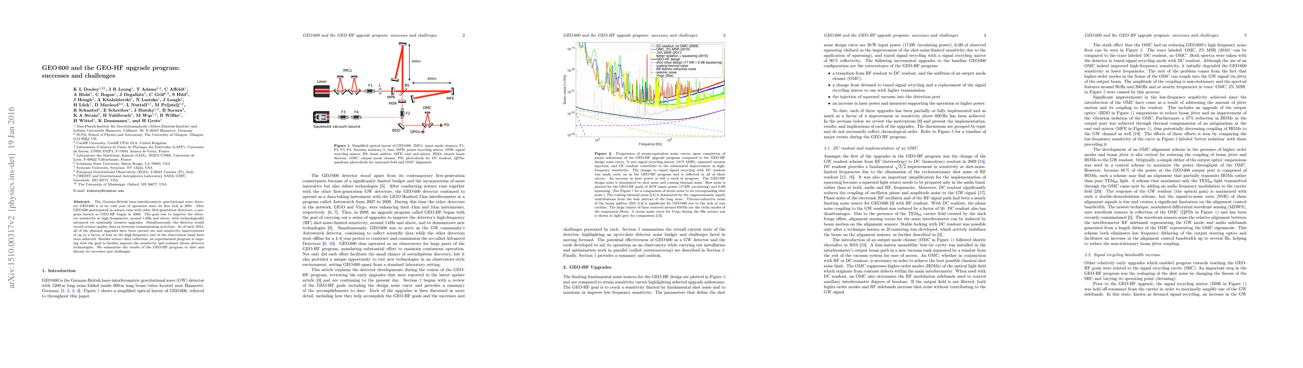 The GEO 600 detector achieved up to a factor of four sensitivity improvement at high frequencies after completing its GEO-HF upgrade program, which began in 2009.