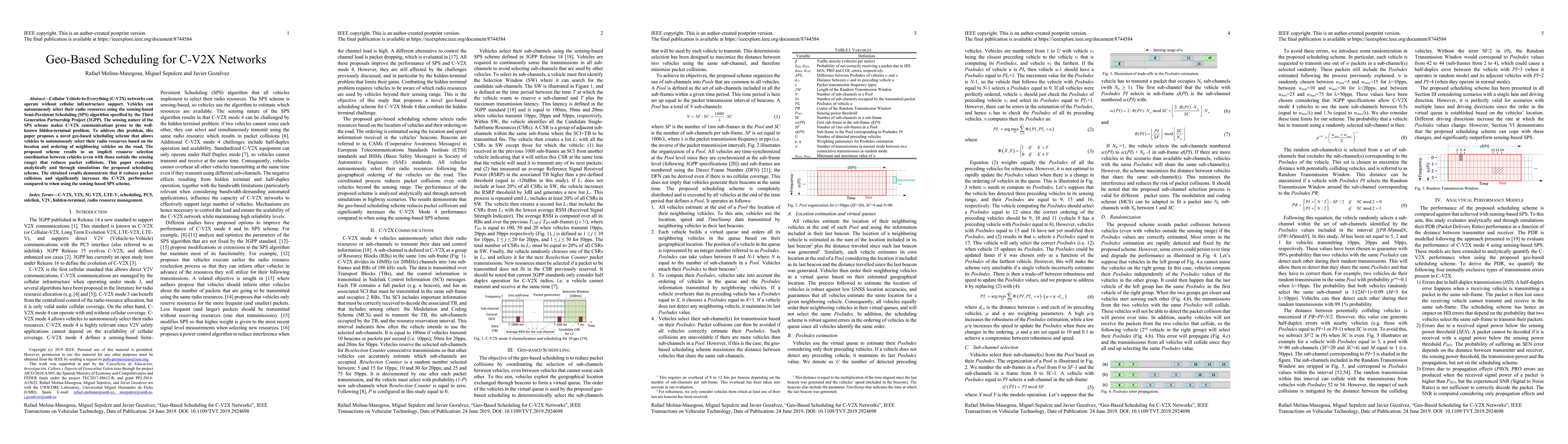 A simulation-based approach was used to evaluate the performance of a geo-based scheduling scheme for C-V2X networks.