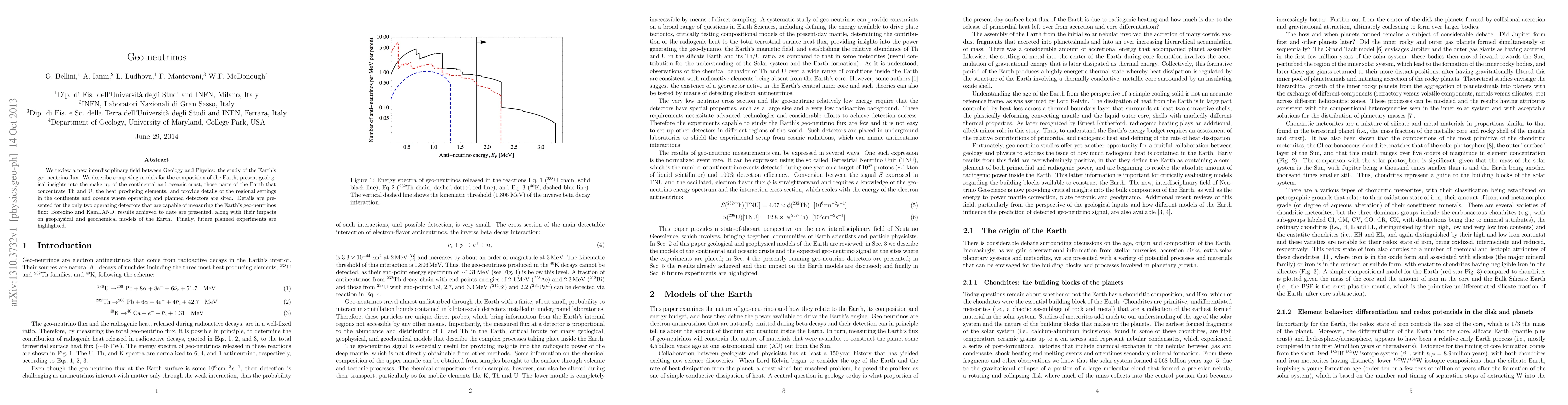 This paper reviews the emerging field of geo-neutrinos, bridging geology and physics, and discusses models of the Earth's composition, focusing on the crust's Th and U concentrations. It highlights the achievements of the current geo-neutrino detectors, Borexino and KamLAND, and their implications for geophysical and geochemical models, while also outlining future experimental plans.