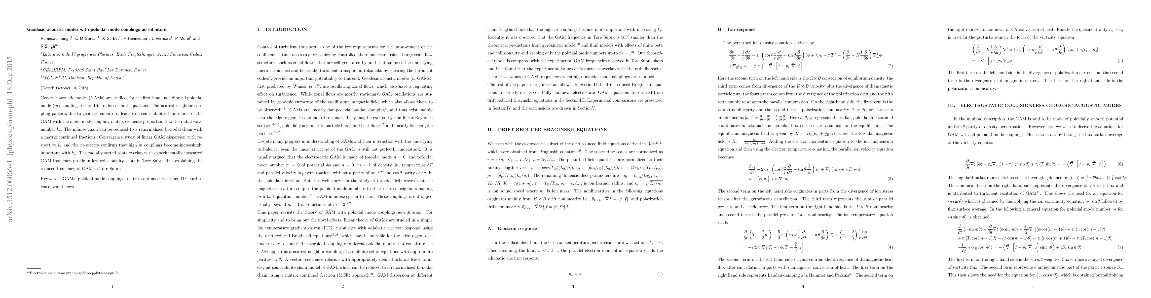 This paper investigates geodesic acoustic modes (GAMs) using drift reduced fluid equations, revealing the importance of poloidal mode couplings. The study finds that high poloidal mode couplings significantly impact GAM behavior, particularly with increasing radial wave number $k_{r}$, and aligns theoretical findings with experimental observations from Tore Supra.