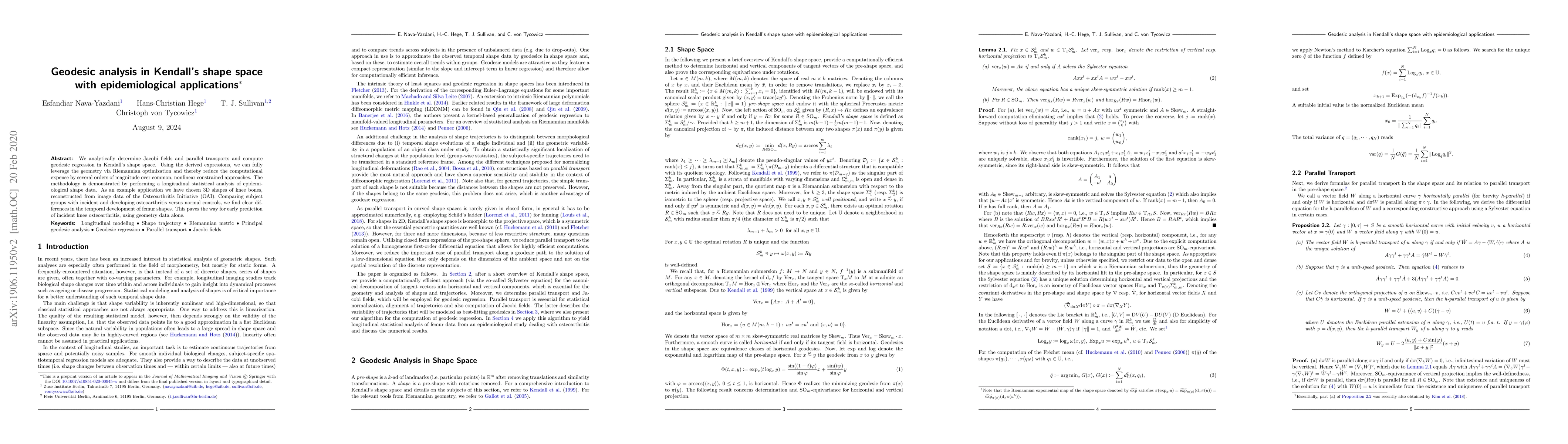 We analytically determine Jacobi fields and parallel transports and compute geodesic regression in Kendall's shape space. Using the derived expressions, we can fully leverage the geometry via Riemannian optimization and thereby reduce the computational expense by several orders of magnitude over common, nonlinear constrained approaches. The methodology is demonstrated by performing a longitudinal statistical analysis of epidemiological shape data. As an example application we have chosen 3D shapes of knee bones, reconstructed from image data of the Osteoarthritis Initiative (OAI). Comparing subject groups with incident and developing osteoarthritis versus normal controls, we find clear differences in the temporal development of femur shapes. This paves the way for early prediction of incident knee osteoarthritis, using geometry data alone.