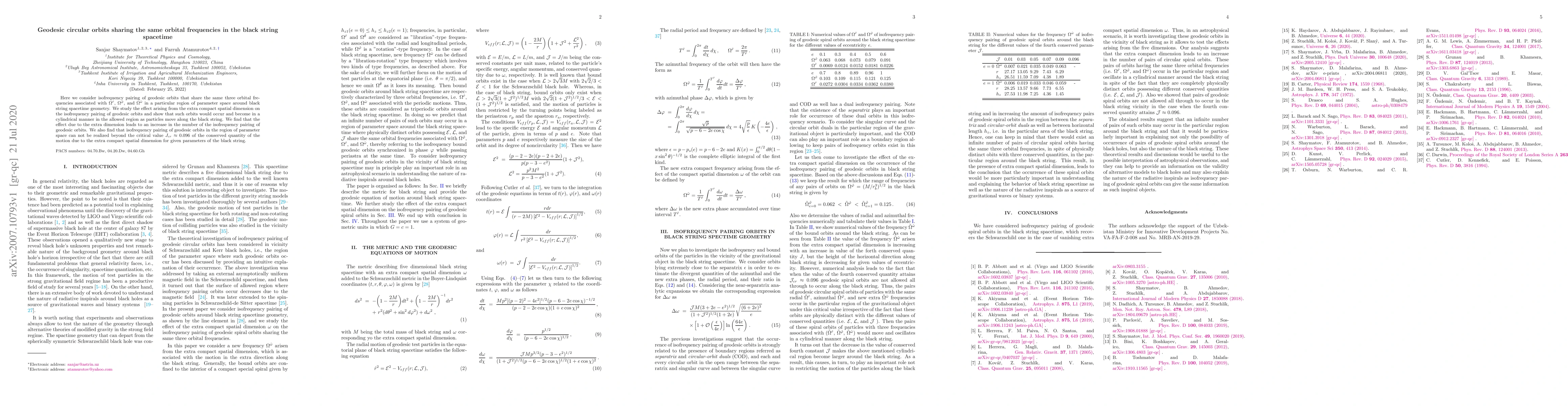 This paper explores geodesic circular orbits in black string spacetime that share identical orbital frequencies, revealing that the extra compact spatial dimension increases the number of such orbits. It concludes that isofrequency pairing cannot occur beyond a critical value of the conserved quantity due to the influence of the extra dimension.