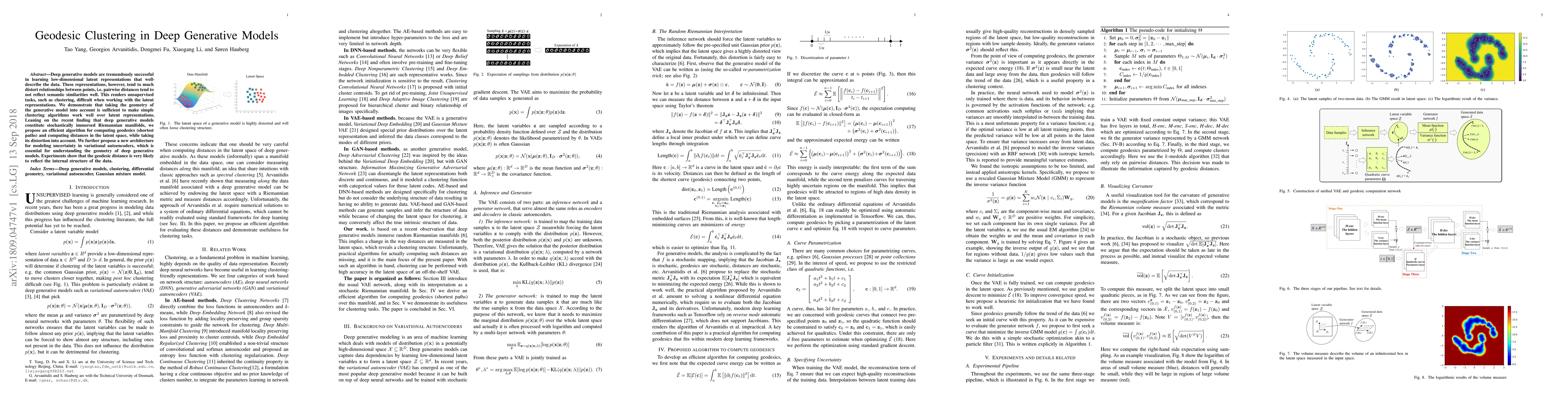 This paper proposes an efficient algorithm for computing geodesic distances in the latent space of deep generative models to better reflect the intrinsic data structure, addressing the distortion of pairwise distances. It also introduces a new architecture for modeling uncertainty in variational autoencoders to understand the geometry of these models, demonstrating improved clustering performance.