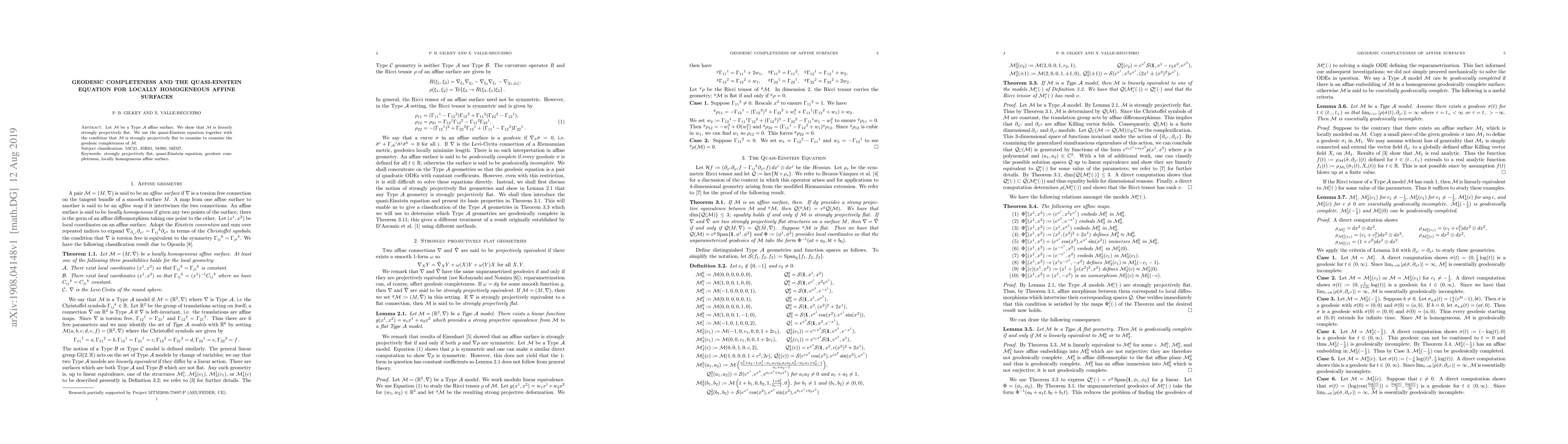 Let $\mathcal{M}$ be a Type $\mathcal{A}$ affine surface. We show that $\mathcal{M}$ is linearly strongly projectively flat. We use the quasi-Einstein equation together with the condition that $\mathcal{M}$ is strongly projectively flat to examine to examine the geodesic completeness of $\mathcal{M}$.