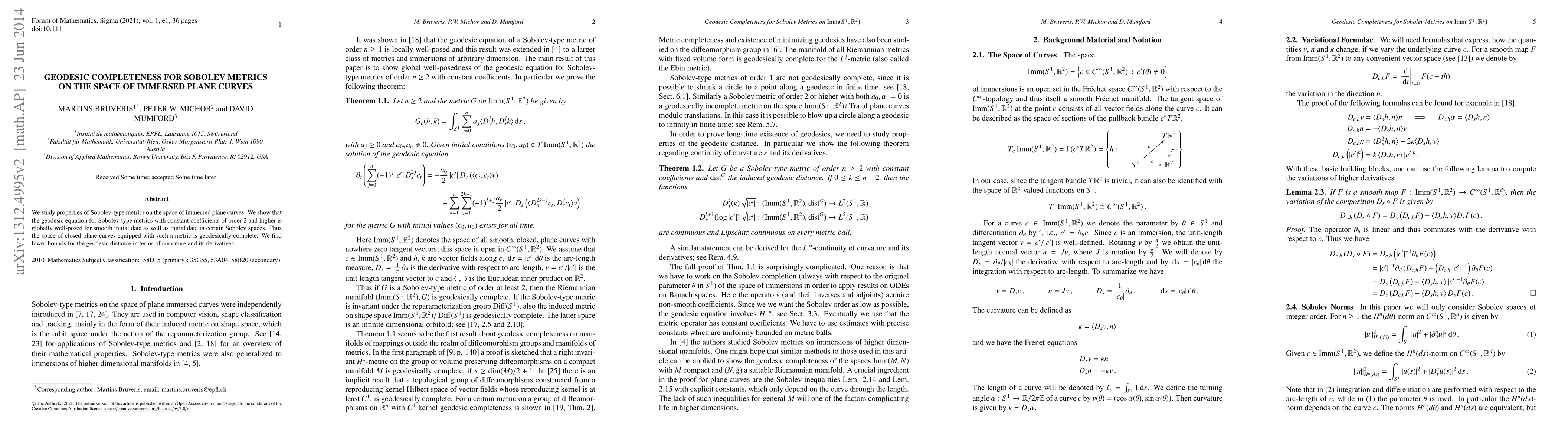 This paper investigates the geodesic completeness of Sobolev metrics on the space of immersed plane curves, demonstrating that the geodesic equation is globally well-posed for smooth and certain Sobolev initial data, and establishes lower bounds for the geodesic distance based on curvature and its derivatives.