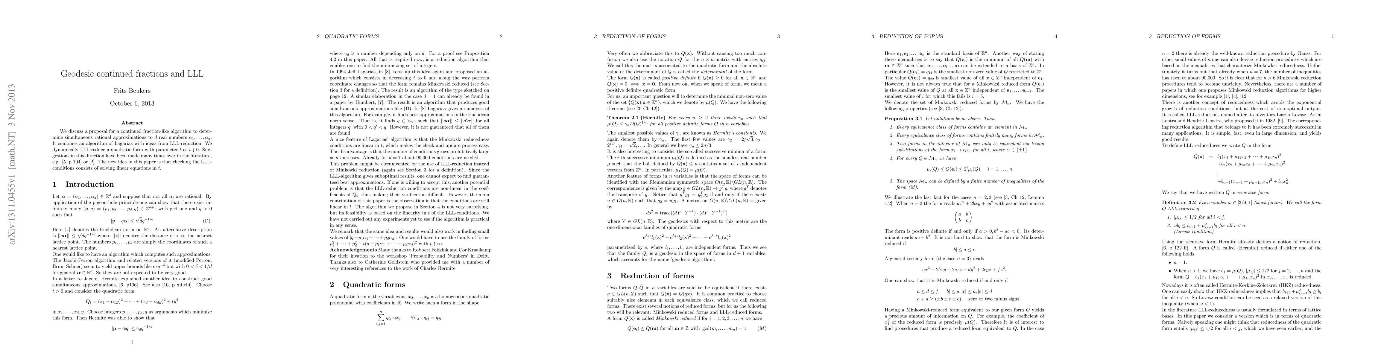 We discuss a proposal for a continued fraction-like algorithm to determine simultaneous rational approximations to $d$ real numbers $\alpha_1,\ldots,\alpha_d$. It combines an algorithm of Hermite and Lagarias with ideas from LLL-reduction. We dynamically LLL-reduce a quadratic form with parameter $t$ as $t\downarrow0$. The new idea in this paper is that checking the LLL-conditions consists of solving linear equations in $t$.