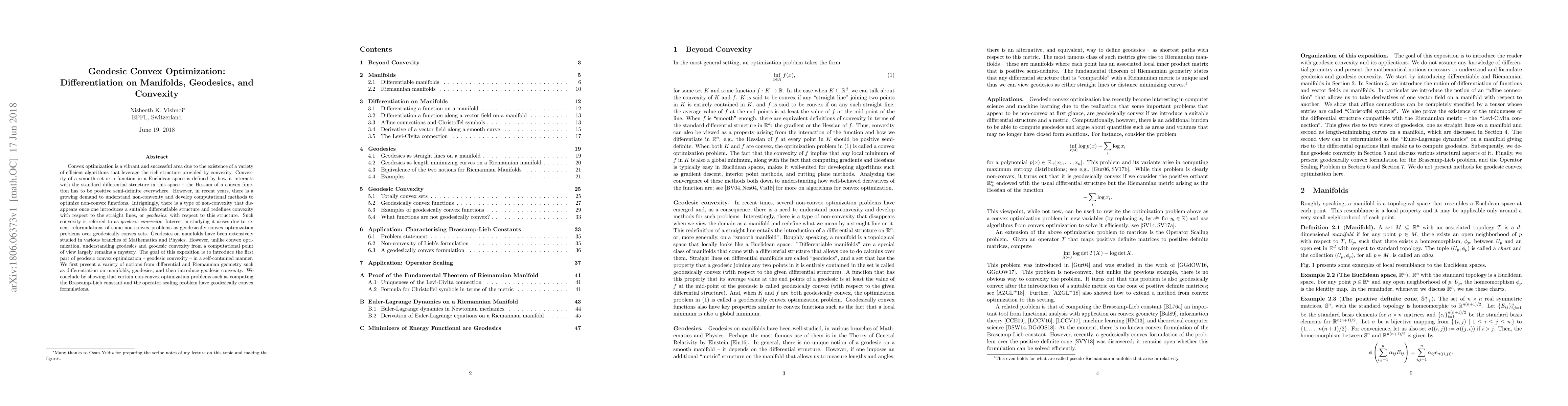 This paper introduces geodesic convexity, a novel form of convexity defined with respect to geodesics on differentiable manifolds, and explores its implications for optimization. It lays the groundwork by explaining concepts from differential and Riemannian geometry and demonstrates its application in reformulating certain non-convex optimization problems.