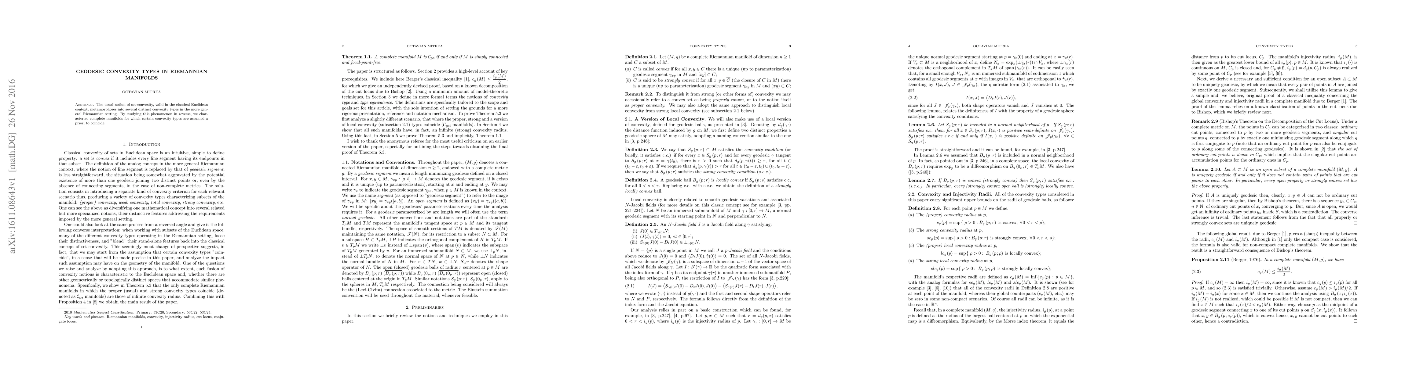This paper explores how set-convexity in Riemannian manifolds diverges from the Euclidean notion, and identifies complete manifolds where certain types of convexity coincide. The study characterizes these manifolds based on their intrinsic geometric properties.