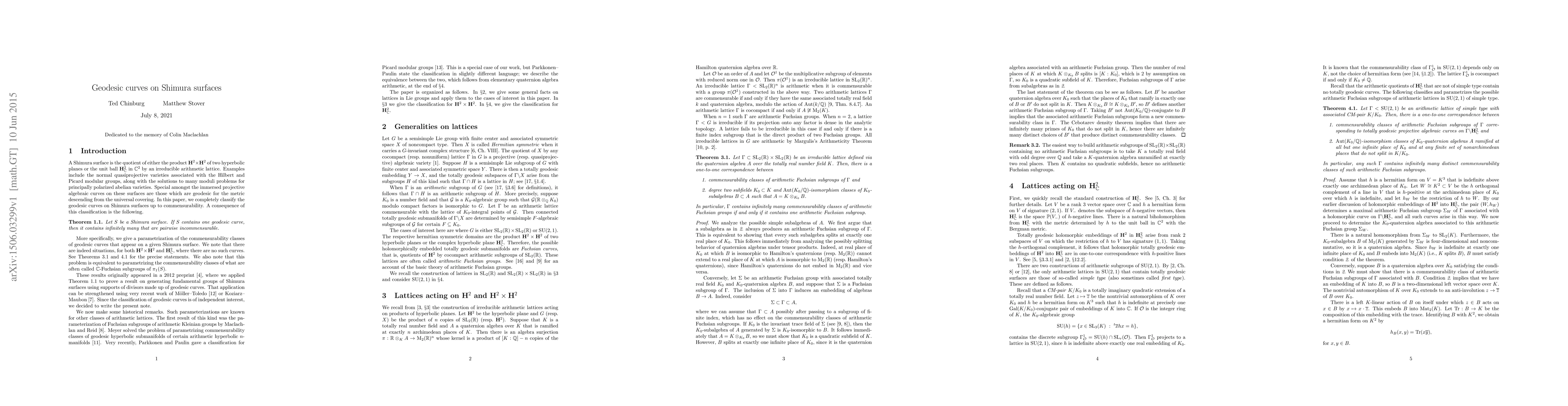 The paper parametrizes the commensurability classes of totally geodesic curves on Shimura surfaces, identifying that if one such class exists, infinitely many do. This work focuses on $\mathbb{C}$-Fuchsian subgroups associated with these curves.