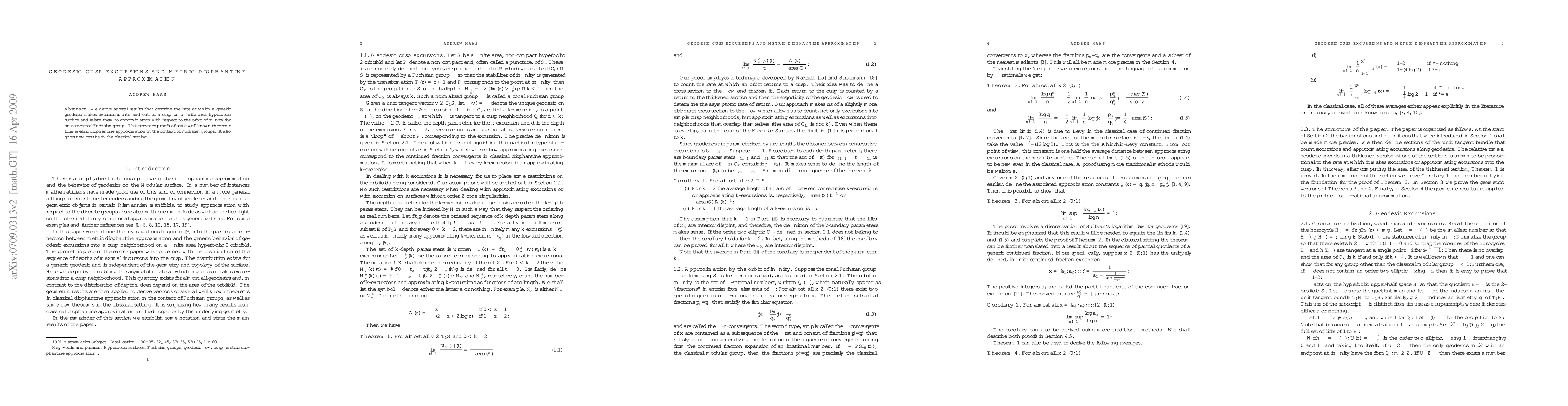 This paper explores the rate of geodesic excursions into cusps on hyperbolic surfaces and links these to metric Diophantine approximation concerning Fuchsian groups, proving known theorems and yielding new results in the classical setting.