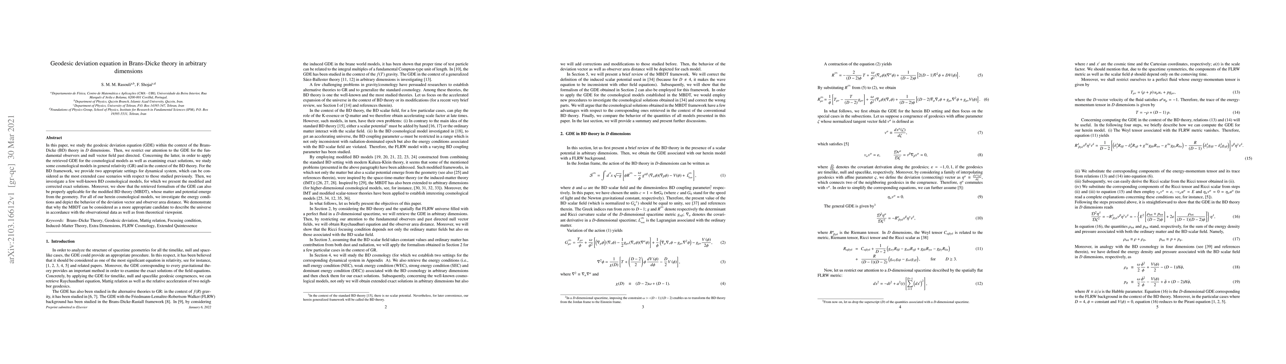 This research paper extends Brans-Dicke theory to arbitrary dimensions, studying geodesic deviation equation and its implications for cosmological models, with findings suggesting the modified theory as a more suitable candidate for describing the universe.