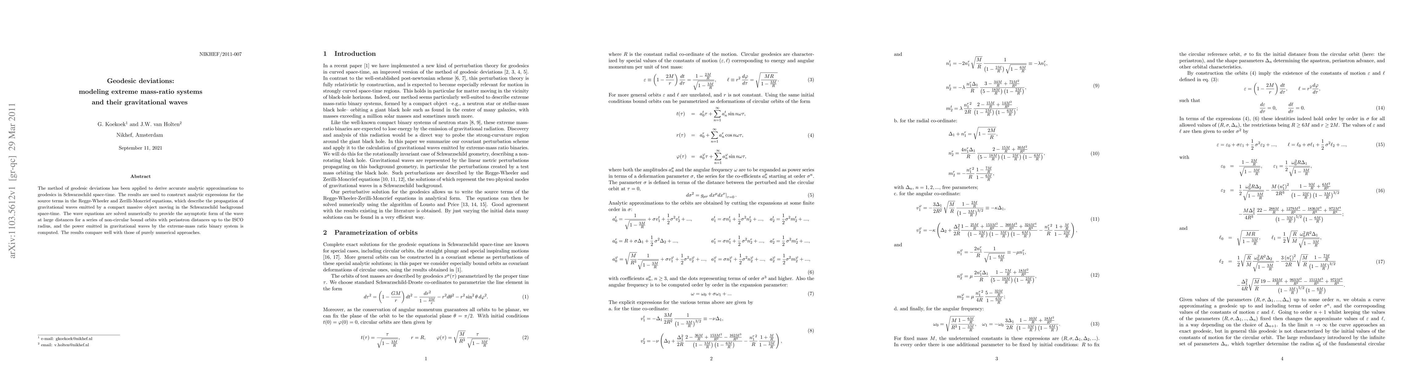 This paper applies the geodesic deviation method to derive analytic approximations for geodesics in Schwarzschild space-time, constructing expressions for gravitational wave source terms in the Regge-Wheeler and Zerilli-Moncrief equations. Numerical solutions of these equations provide the asymptotic gravitational wave forms and power emitted for extreme-mass ratio binary systems, with results comparable to purely numerical methods.