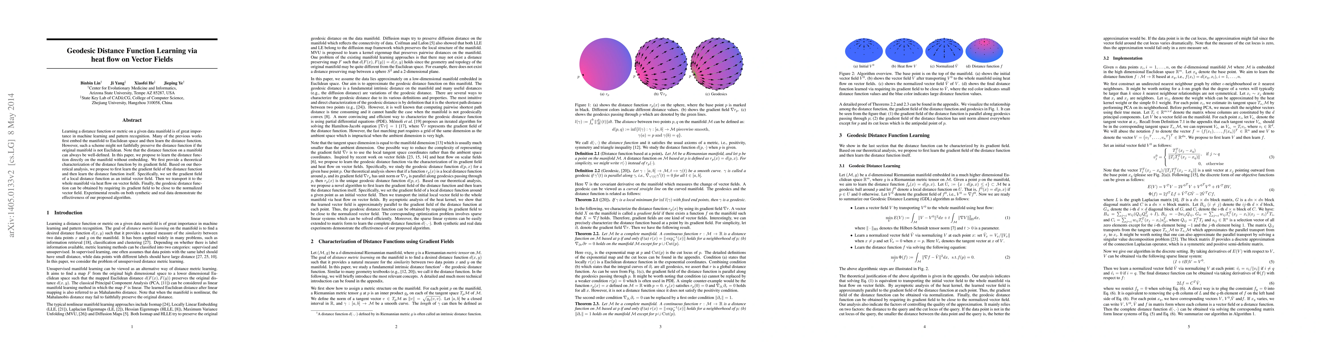This paper proposes a method to learn a geodesic distance function directly on a data manifold without embedding it into Euclidean space. It introduces a theoretical characterization of the distance function via its gradient field, learning the gradient field first and then the distance function by transporting the gradient field across the manifold using heat flow on vector fields. Experimental results show the effectiveness of the proposed algorithm on both synthetic and real data.