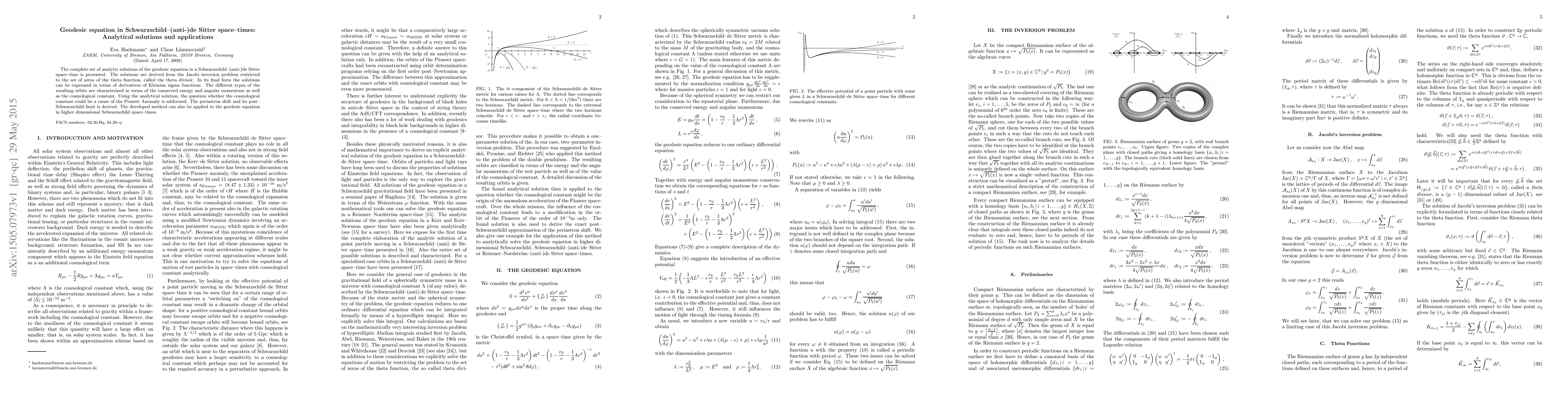 This paper presents a complete set of analytic solutions for the geodesic equation in Schwarzschild-(anti-)de Sitter space-times, derived from the Jacobi inversion problem and expressed in terms of Kleinian sigma functions. It also explores the potential link between the cosmological constant and the Pioneer Anomaly, and extends the method to higher dimensional Schwarzschild space-times.
