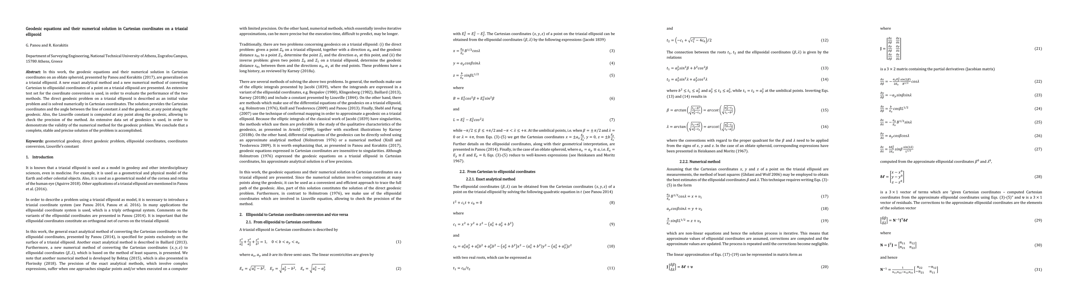 This paper generalizes geodesic equations and their numerical solutions from an oblate spheroid to a triaxial ellipsoid, introducing new analytical and numerical methods for coordinate conversion and solving the direct geodesic problem in Cartesian coordinates. The methods are validated through extensive testing and demonstrate precise and stable results.