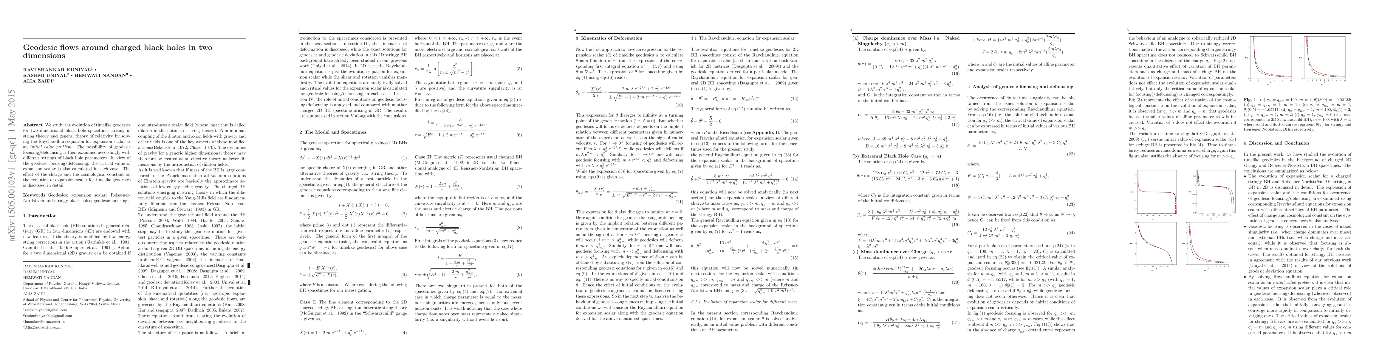 We study the evolution of timelike geodesics for two dimensional black hole spacetimes arising in string theory and general theory of relativity by solving the Raychaudhuri equation for expansion scalar as an initial value problem. The possibility of geodesic focusing/defocusing is then examined accordingly with different settings of black hole parameters. In view of the geodesic focusing/defocusing, the critical value of expansion scalar is also calculated in each case. The effect of the charge and the cosmological constant on the evolution of expansion scalar for timelike geodesics is discussed in detail.