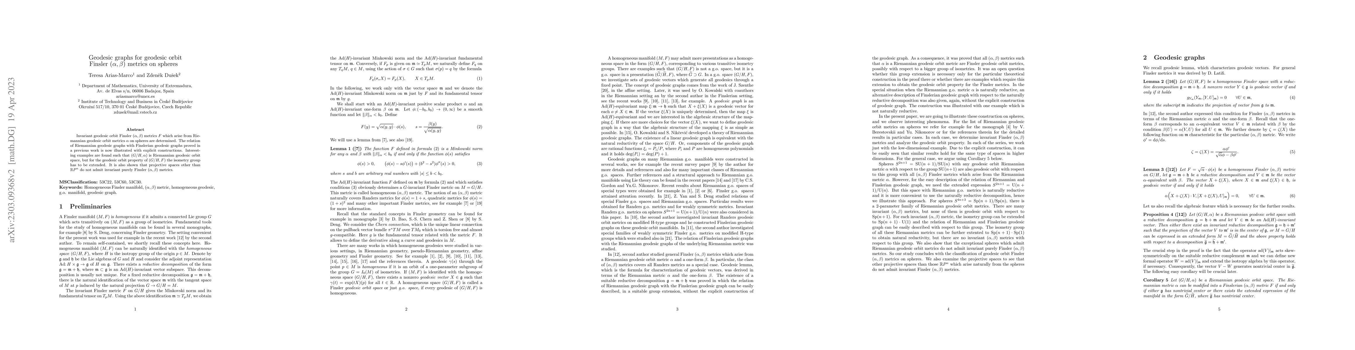 This paper identifies invariant geodesic orbit Finsler $(\alpha,\beta)$ metrics on spheres, illustrating the relationship between Riemannian and Finsler geodesic graphs with specific constructions. It also reveals that certain Riemannian geodesic orbit spaces require an extended isometry group for their Finslerian geodesic orbit properties and concludes that only ${\mathbb{R}}P^n$ admits invariant purely Finsler $(\alpha,\beta)$ metrics among projective spaces.