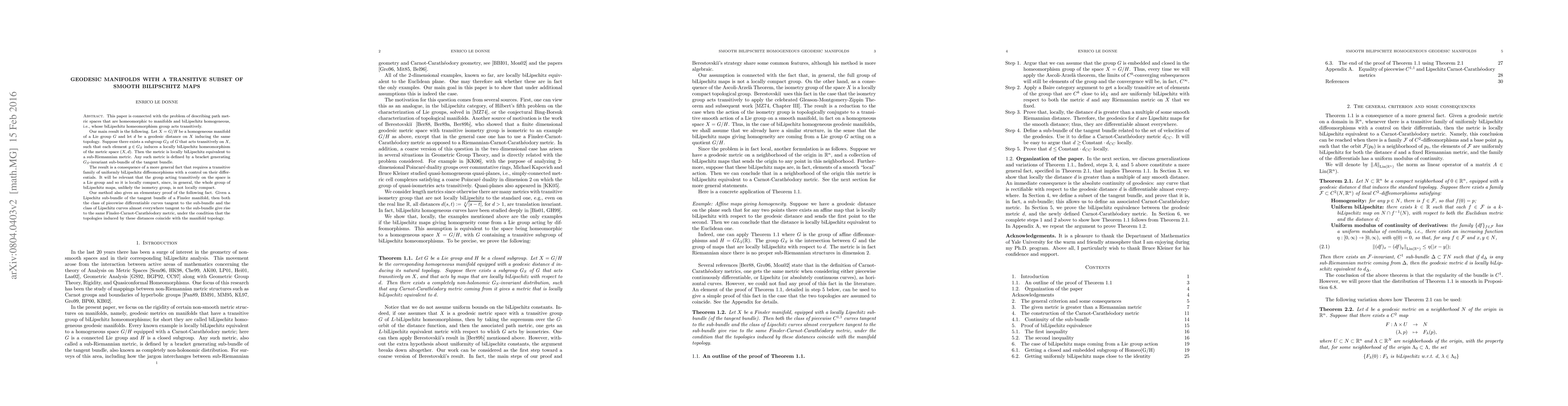 Researchers have found that if a space has a transitive subset of smooth biLipschitz maps, its metric is locally biLipschitz equivalent to a sub-Riemannian metric, which can be defined by a specific type of bundle on the tangent space.