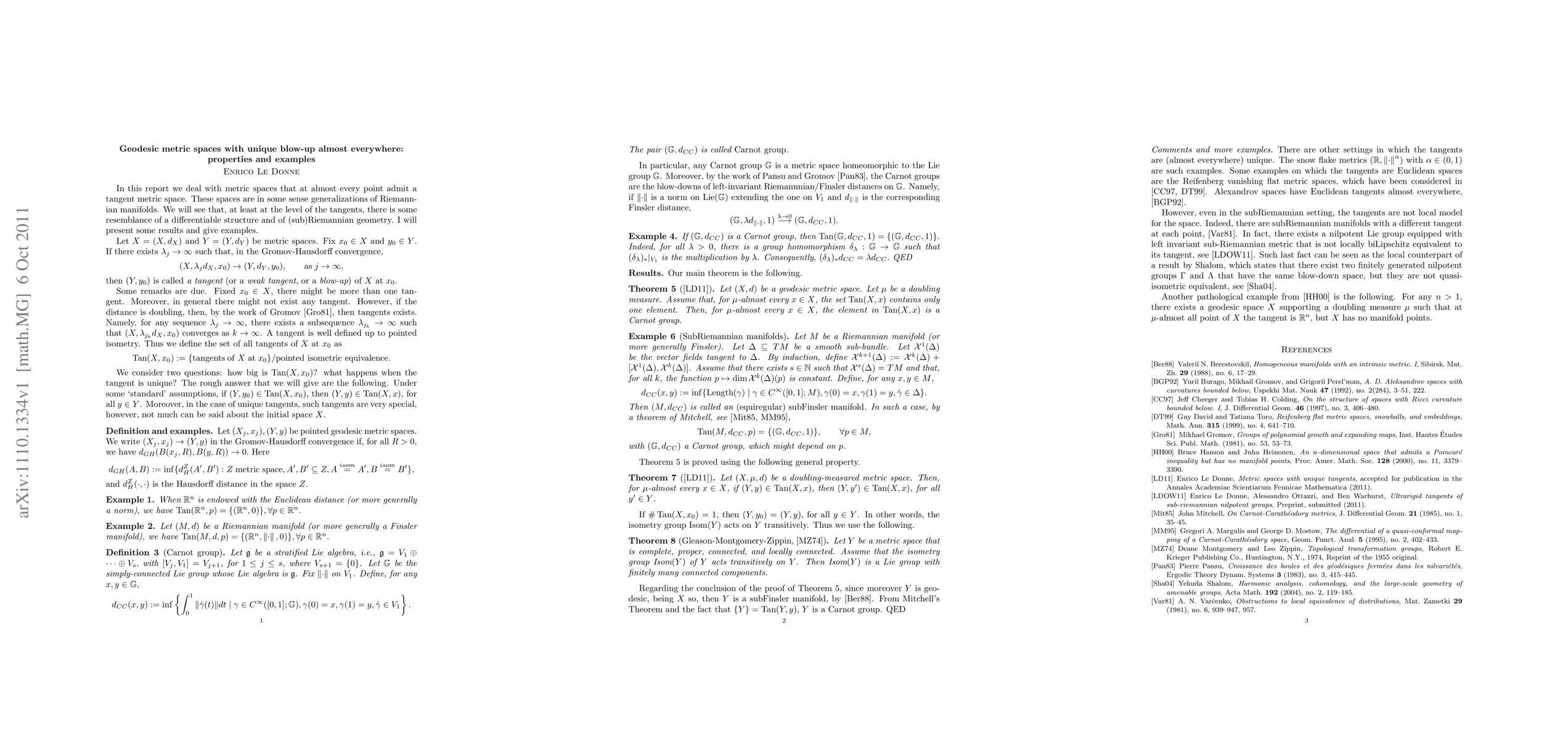 This short note has been written as an Oberwolfach report for the workshop "Differentialgeometrie im Grossen". We discuss properties of metric spaces that at almost all points admit a tangent metric space. We explain why, under some mild assumptions, the tangents are almost surely subFinsler Carnot groups. We mention several situations when the tangents are Euclidean spaces, but the initial metric spaces are quite pathological.