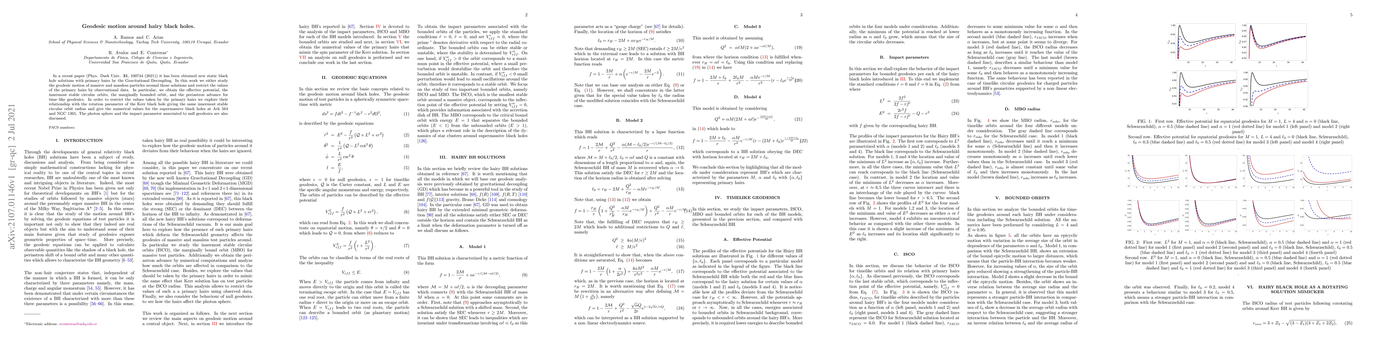 In a recent paper (Phys. Dark Univ. {\bf 31}, 100744 (2021)) it has been obtained new static black hole solutions with primary hairs by the Gravitational Decoupling. In this work we either study the geodesic motion of massive and massless particles around those solutions and restrict the values of the primary hairs by observational data. In particular, we obtain the effective potential, the innermost stable circular orbits, the marginally bounded orbit, and the periastron advance for time--like geodesics. In order to restrict the values taken by the primary hairs we explore their relationship with the rotation parameter of the Kerr black hole giving the same innermost stable circular orbit radius and give the numerical values for the supermassive black holes at Ark 564 and NGC 1365. The photon sphere and the impact parameter associated to null geodesics are also discussed.