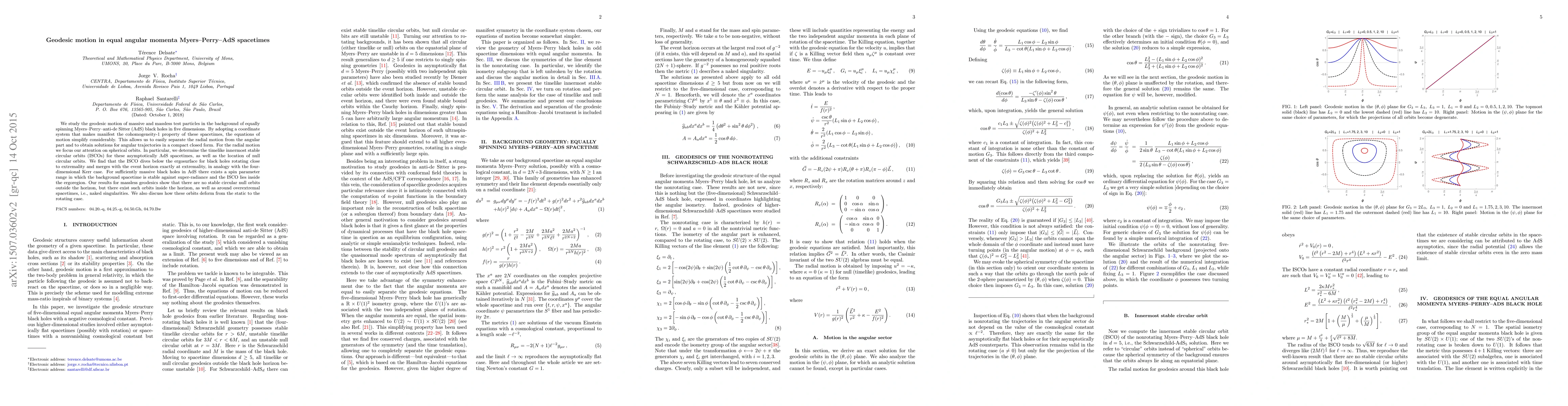 This paper investigates geodesic motion in five-dimensional Myers-Perry-AdS black holes with equal angular momenta, revealing the behavior of both massive and massless particles. It finds that the innermost stable circular orbits (ISCOs) behave similarly to those in the four-dimensional Kerr case, diving below the ergosurface and merging with the event horizon at extremality.