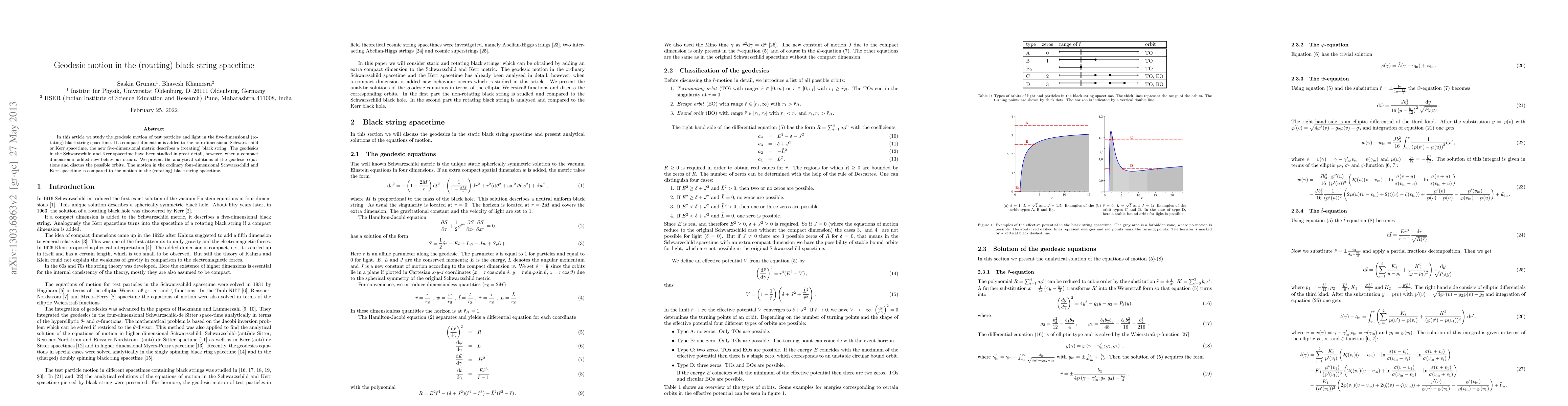 In this article we study the geodesic motion of test particles and light in the five-dimensional (rotating) black string spacetime. If a compact dimension is added to the four-dimensional Schwarzschild or Kerr spacetime, the new five-dimensional metric describes a (rotating) black string. The geodesics in the Schwarzschild and Kerr spacetime have been studied in great detail, however, when a compact dimension is added new behaviour occurs. We present the analytical solutions of the geodesic equations and discuss the possible orbits. The motion in the ordinary four-dimensional Schwarzschild and Kerr spacetime is compared to the motion in the (rotating) black string spacetime.