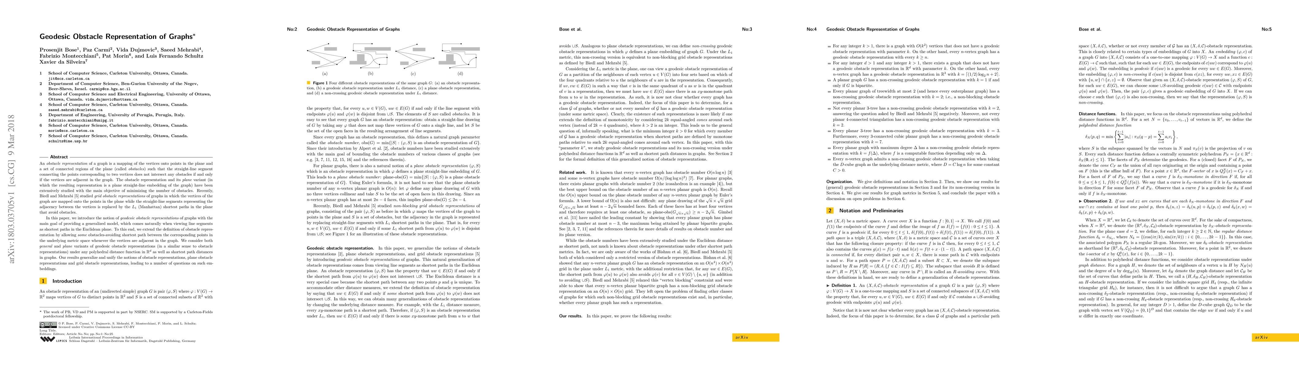 This paper introduces geodesic obstacle representations of graphs, generalizing previous obstacle representation models by allowing shortest path distances in the Euclidean plane to avoid obstacles, thus unifying plane and grid obstacle representations. The study considers both general and plane variants under polyhedral distance functions and shortest path distances in graphs.