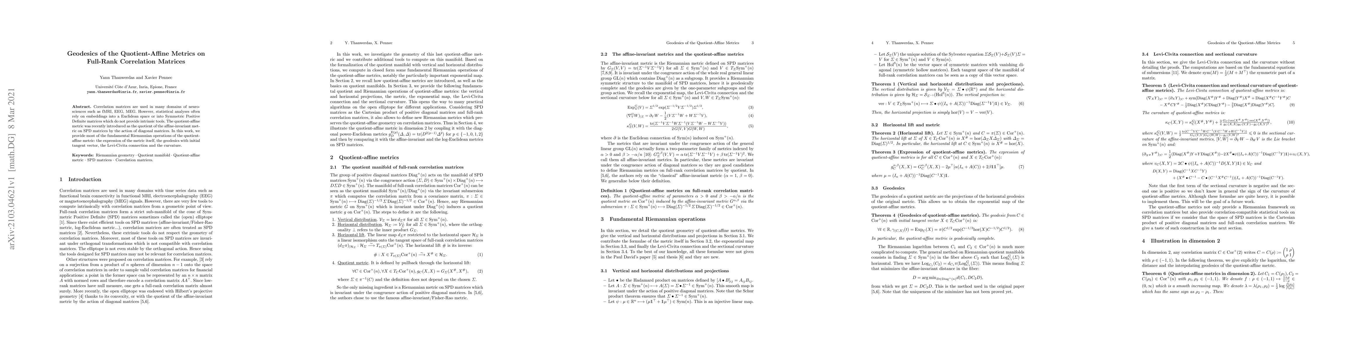 This paper introduces the quotient-affine metric on full-rank correlation matrices, providing essential Riemannian operations including the metric expression, geodesics, Levi-Civita connection, and curvature, aiming to offer intrinsic tools for statistical analyses in neurosciences.