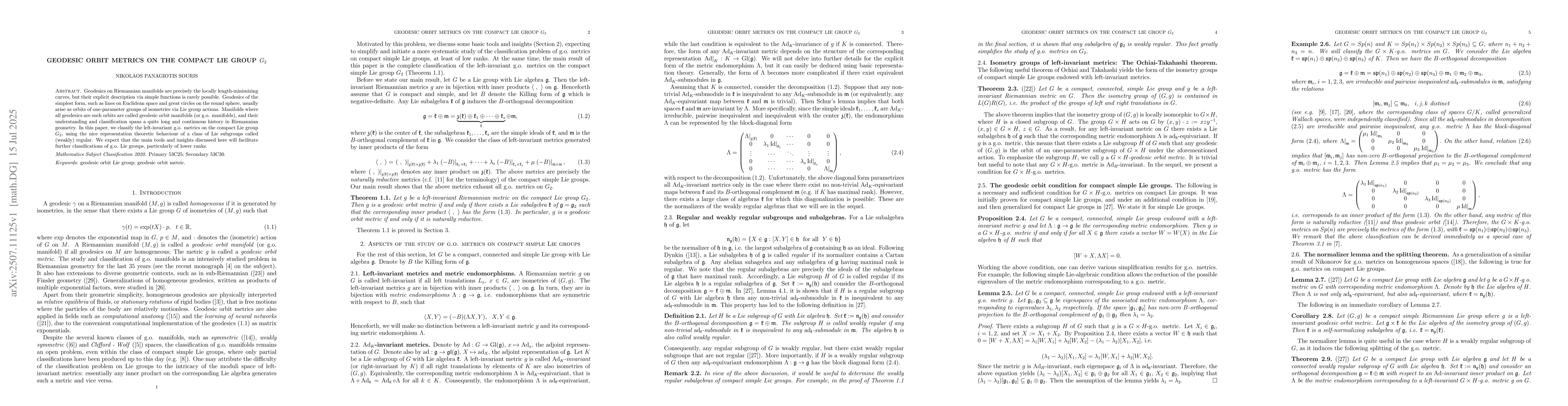 Geodesics on Riemannian manifolds are precisely the locally length-minimizing curves, but their explicit description via simple functions is rarely possible. Geodesics of the simplest form, such as lines on Euclidean space and great circles on the round sphere, usually arise as orbits of one-parameter groups of isometries via Lie group actions. Manifolds where all geodesics are such orbits are called geodesic orbit manifolds (or g.o. manifolds), and their understanding and classification spans a quite long and continuous history in Riemannian geometry. In this paper, we classify the left-invariant g.o. metrics on the compact Lie group $G_2$, using the nice representation theoretic behaviour of a class of Lie subgroups called (weakly) regular. We expect that the main tools and insights discussed here will facilitate further classifications of g.o. Lie groups, particularly of lower ranks.