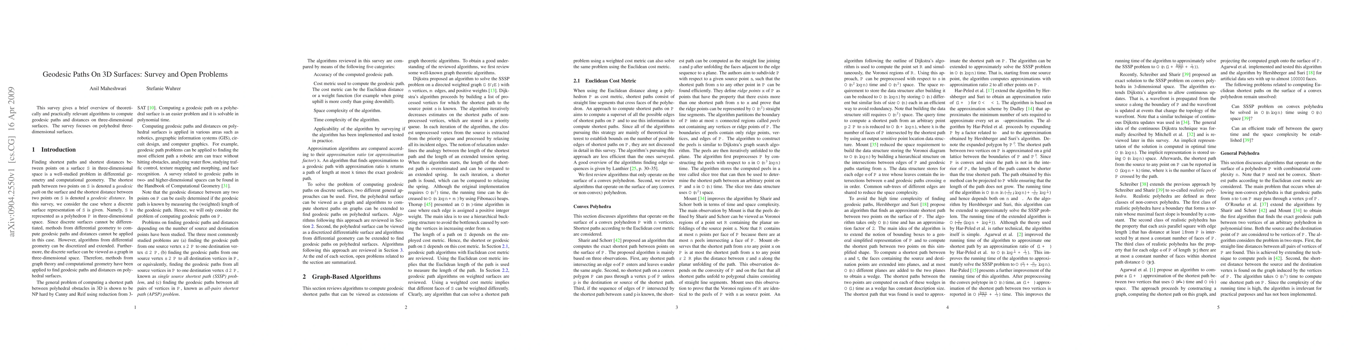 This survey gives a brief overview of theoretically and practically relevant algorithms to compute geodesic paths and distances on three-dimensional surfaces. The survey focuses on polyhedral three-dimensional surfaces.