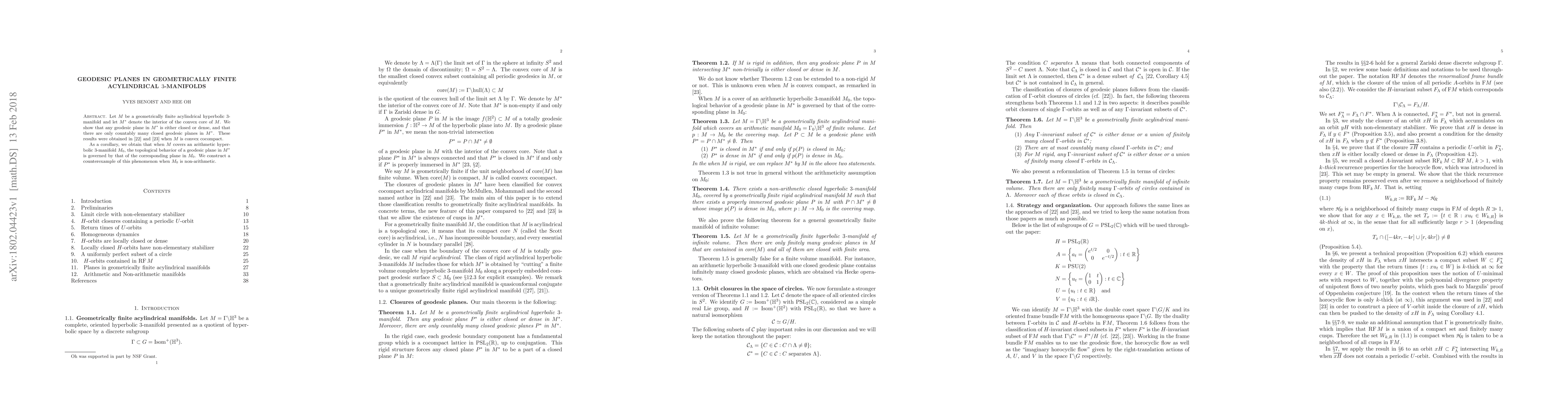 Researchers study geodesic planes in hyperbolic 3-manifolds, finding that they are either closed or dense, with only countably many closed ones, with implications for covering manifolds.