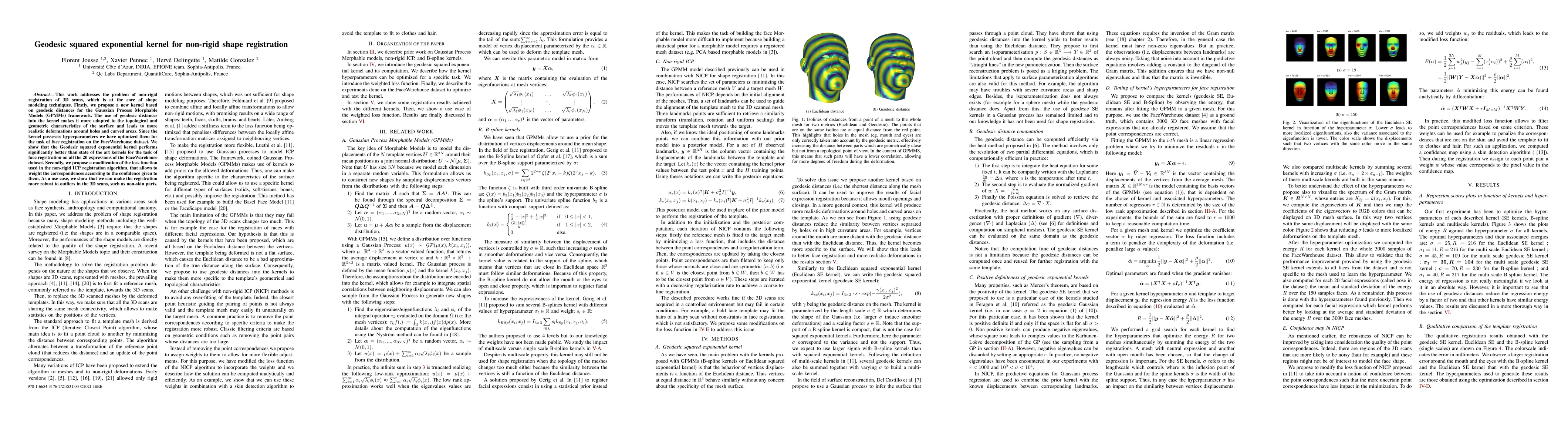 This paper introduces a new geodesic squared exponential kernel for Gaussian Process Morphable Models to improve non-rigid registration of 3D scans, demonstrating superior performance in face registration on the FaceWarehouse dataset. Additionally, it proposes a modified loss function for the non-rigid ICP algorithm to enhance robustness against outliers in 3D scans.
