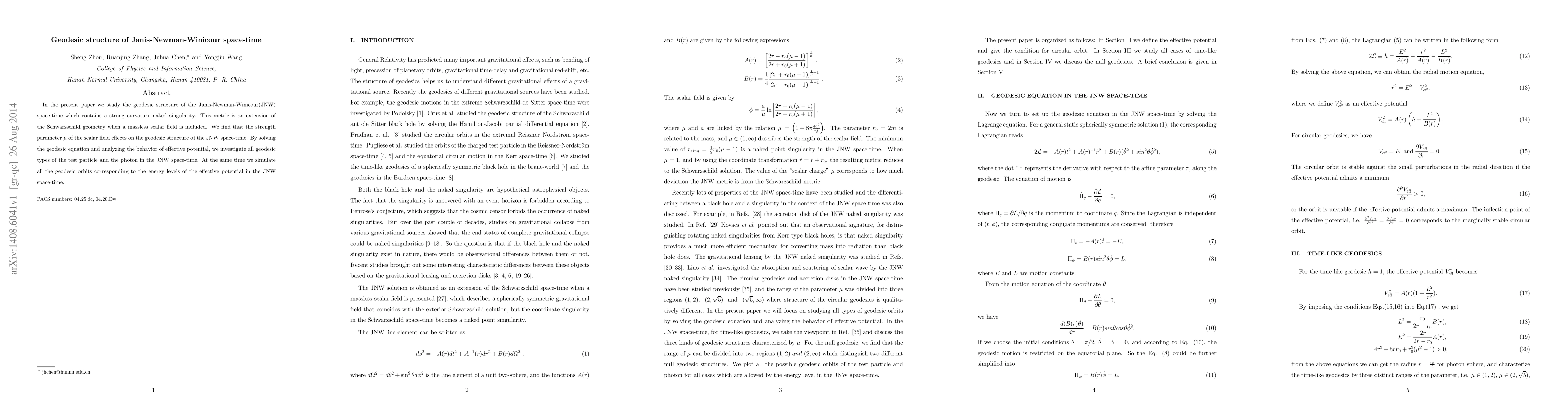 This paper investigates the geodesic structure of the Janis-Newman-Winicour (JNW) space-time, which features a strong curvature naked singularity and includes a massless scalar field. The study analyzes how the scalar field's strength parameter $\mu$ influences geodesic behavior, examining both test particle and photon orbits through effective potential analysis.