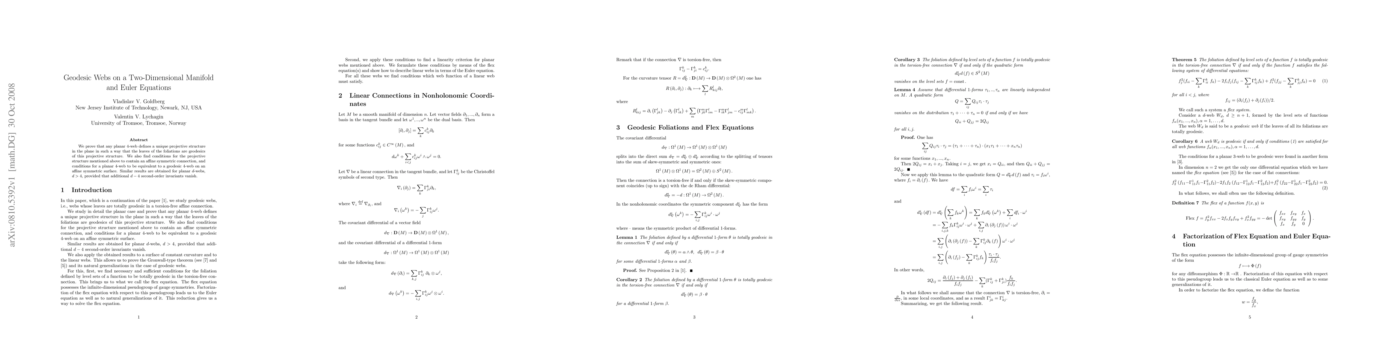 Researchers prove that planar 4-webs define unique projective structures with geodesic leaves, and find conditions for these structures to contain affine symmetric connections.