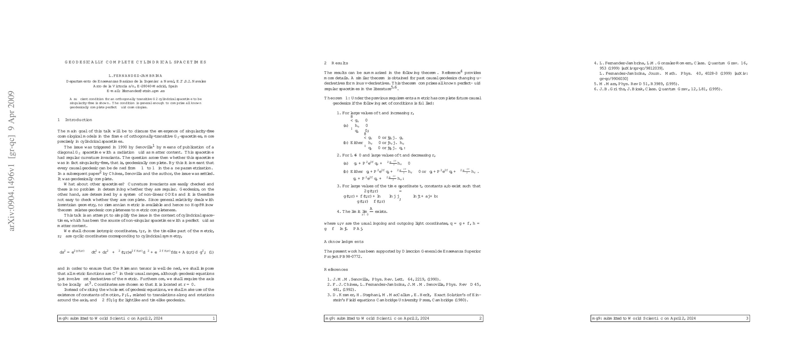 Summary: This paper establishes a condition for orthogonally transitive G2 cylindrical spacetimes to be singularity-free, encompassing all known geodesically complete perfect fluid cosmologies. The condition ensures the absence of singularities in these spacetimes.
