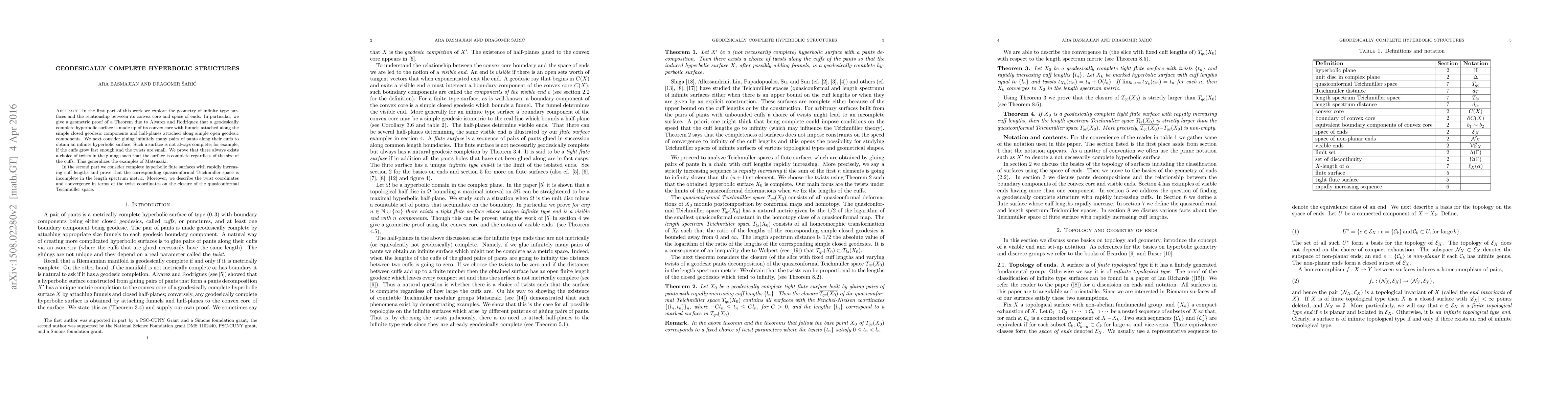The research explores the geometry of infinite type surfaces, examining the relationship between the convex core and the space of ends. It proves the existence of twist parameters ensuring geodesic completeness for surfaces constructed by gluing pairs of pants.