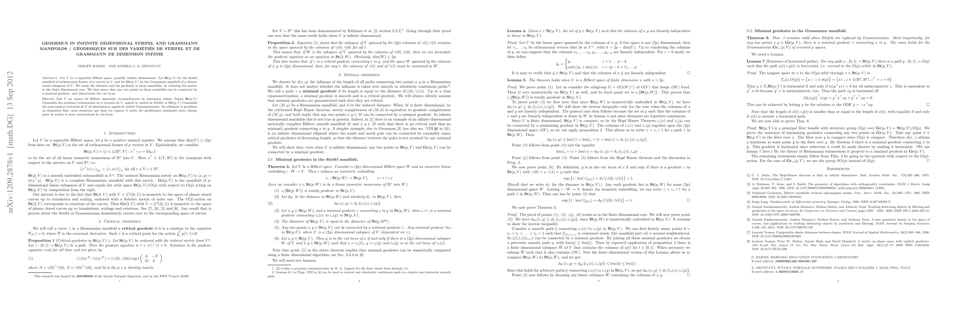 This paper investigates the geodesics and distances in infinite-dimensional Stiefel and Grassmann manifolds by leveraging finite-dimensional approximations. It demonstrates the existence of minimal geodesics connecting any two points and identifies the cut locus within these manifolds.