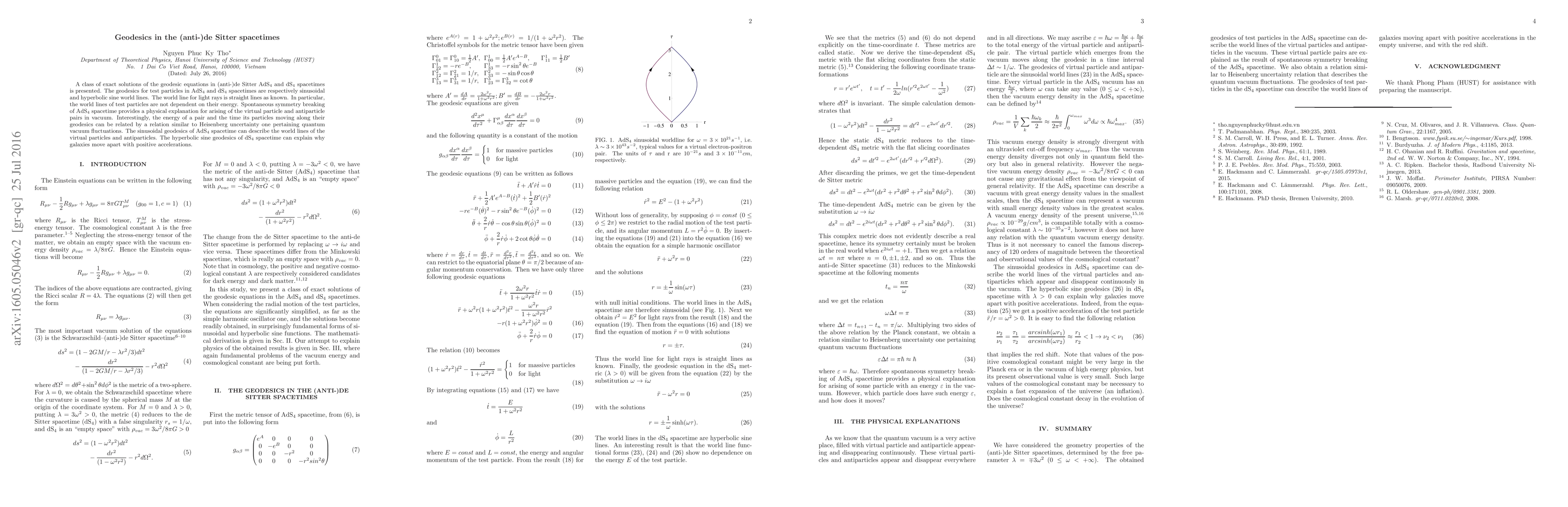 This paper presents exact solutions for geodesics in (anti-)de Sitter spacetimes, showing that test particles follow sinusoidal and hyperbolic sine world lines in AdS$_4$ and dS$_4$ respectively, while light rays travel along straight lines. The study also links spontaneous symmetry breaking and vacuum fluctuations to the geodesics, providing a quantum mechanical interpretation.